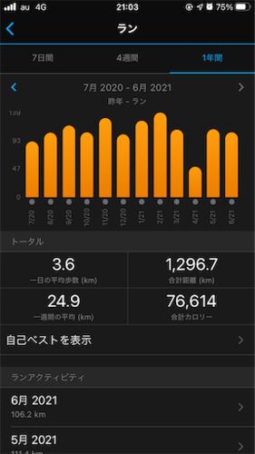 6月11日時点でまだ30㎞に満たない。月間で100㎞、できれば110㎞は走りたいとこで、これから梅雨が本格化することを考えるとこのペースでは難しい。明日明後日でどれだけ走れるか、だな。